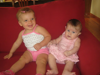 So, I've had a hard time discerning Finley's first word. She's been saying "mama" and "dada" for months. But it's more of a general babble as opposed to her identifying us, so I don't count either of those as words yet. About a month ago she started saying "night night", but it was sort of prompted. At bedtime I say, "It's night night time", and then she will say, "night night" and wave bye bye to whoever is watching. So, I kinda count that as a first word. Her new word, that she says completely unprompted, is "uh oh". She says it anytime a toy falls to the floor and makes a loud noise. She even sticks out her bottom lip while saying it! We don't like to encourage her to drop or throw her toys, but I just had to catch it on video. You can kinda see the pout in the beginning of the video.
